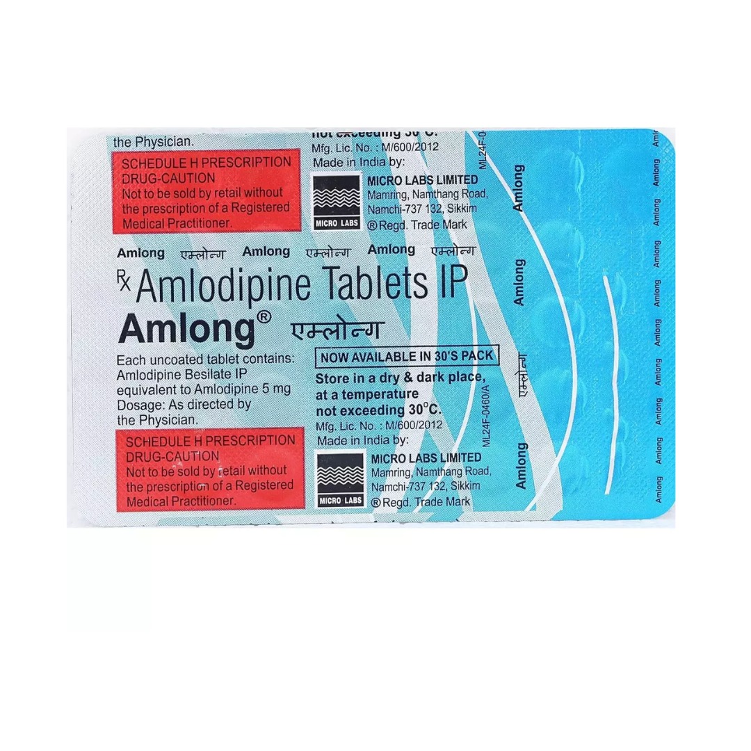 Amlong contains Amlodipine and is prescribed for controlling blood pressure and preventing chest pain episodes.