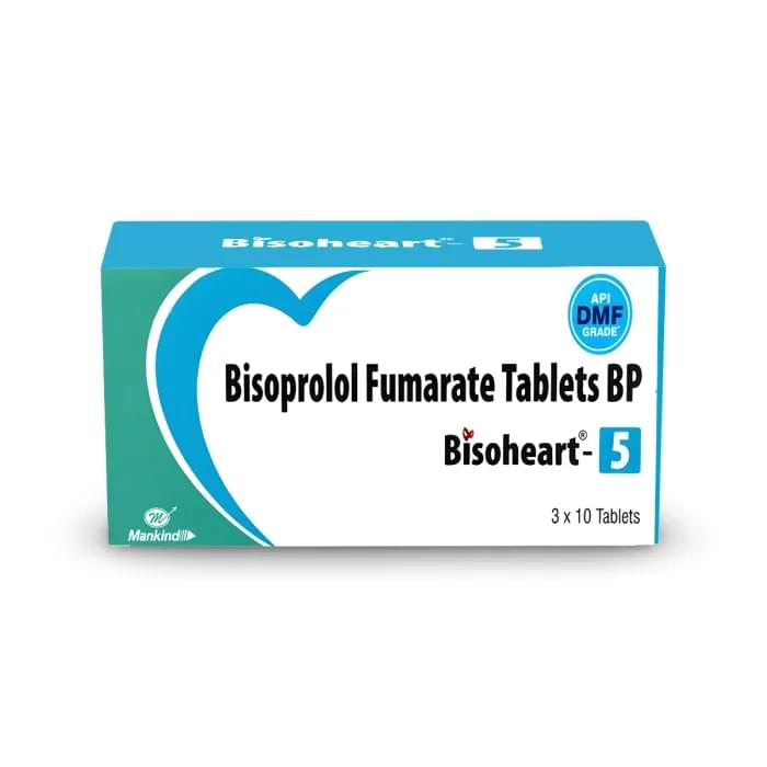 Bisoheart 5 is a brand of bisoprolol fumarate 5 mg, a cardio-selective beta-1 blocker used mainly to treat high blood pressure (hypertension), angina, and heart failure.