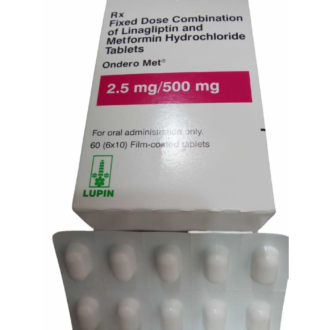 Ondero Met 2.5/500 Tablet is a combination antidiabetic medication containing Linagliptin (DPP-4 inhibitor) and Metformin (biguanide). It is prescribed for patients with Type 2 diabetes mellitus when blood glucose cannot be controlled by diet, exercise, or single-drug therapy.