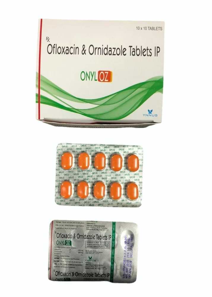 Onilox‑OZ Tablet is a combination antibiotic medicine used to treat bacterial and protozoal infections, especially infections of the gastrointestinal tract such as diarrhea and dysentery. It contains Ofloxacin (a fluoroquinolone antibiotic) and Ornidazole (an antiprotozoal and antibacterial agent).