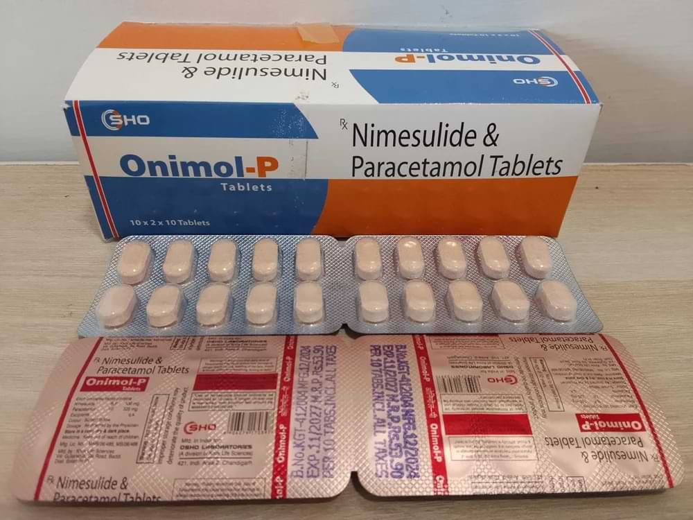 ONIMOL-P Tablet is a combination analgesic and antipyretic medicine used to relieve pain, inflammation, and fever. It usually contains Nimesulide (100 mg) + Paracetamol (500 mg).