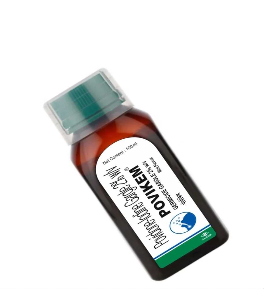 Povikem Gargle is an antiseptic oral solution mainly containing povidone-iodine, a broad-spectrum antimicrobial agent. It is widely used for gargling and mouth rinsing to prevent or treat infections in the mouth and throat.