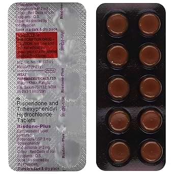 Risdone Plus Tablet is a combination antipsychotic medicine containing Risperidone (3 mg) and Trihexyphenidyl (2 mg). It is mainly used in the treatment of schizophrenia and other psychiatric disorders. Risperidone balances brain chemicals like dopamine and serotonin, improving mood, thinking, and behavior, while Trihexyphenidyl helps reduce movement-related side effects caused by antipsychotic drugs.