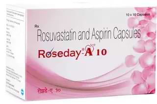 Roseday-A 10 capsule/tablet is a fixed-dose combination drug used mainly in patients with high cholesterol and risk of cardiovascular disease. It belongs to the group of antilipidemic and antiplatelet medicines and helps prevent complications like heart attack, stroke, and angina.