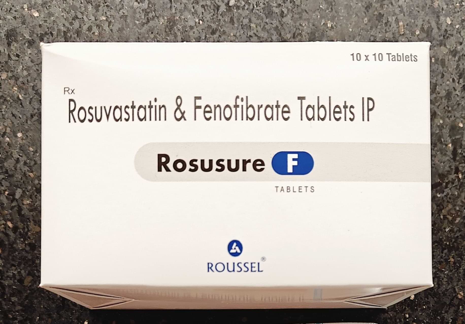 Rosusure-F Tablet is a lipid-lowering combination drug commonly prescribed for patients with mixed dyslipidemia or hyperlipidemia. It combines Rosuvastatin, a statin that works by inhibiting the HMG-CoA reductase enzyme to reduce cholesterol production in the liver, and Fenofibrate, a fibrate that activates PPAR-alpha receptors to enhance the breakdown of triglycerides.