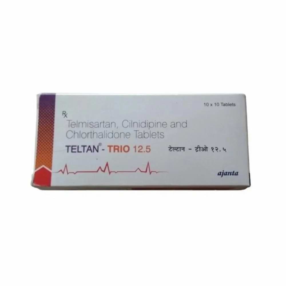 TELTAN TRIO 40/10/12.5 is a combination antihypertensive medicine used for the treatment of high blood pressure (hypertension). It contains three drugs: Telmisartan (40 mg), Amlodipine (10 mg), and Chlorthalidone (12.5 mg).